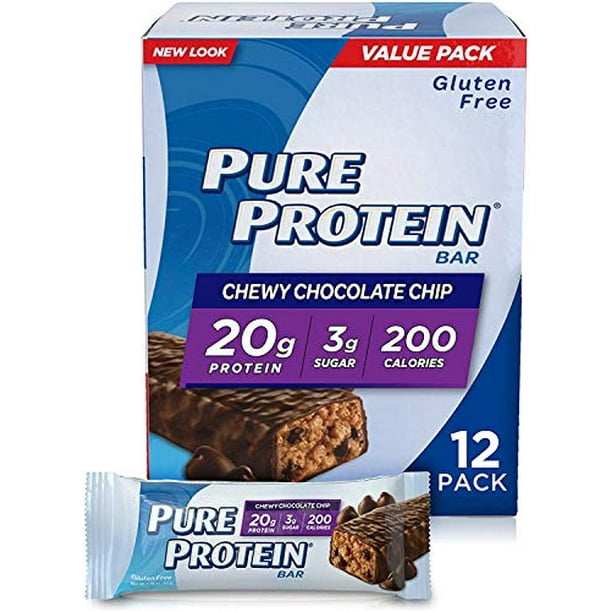 Pure Protein Bars High Protein Nutritious Snacks To Support Energy Low Sugar Gluten Free Chewy Chocolate Chip 1 76oz 12 Pack Walmart Com